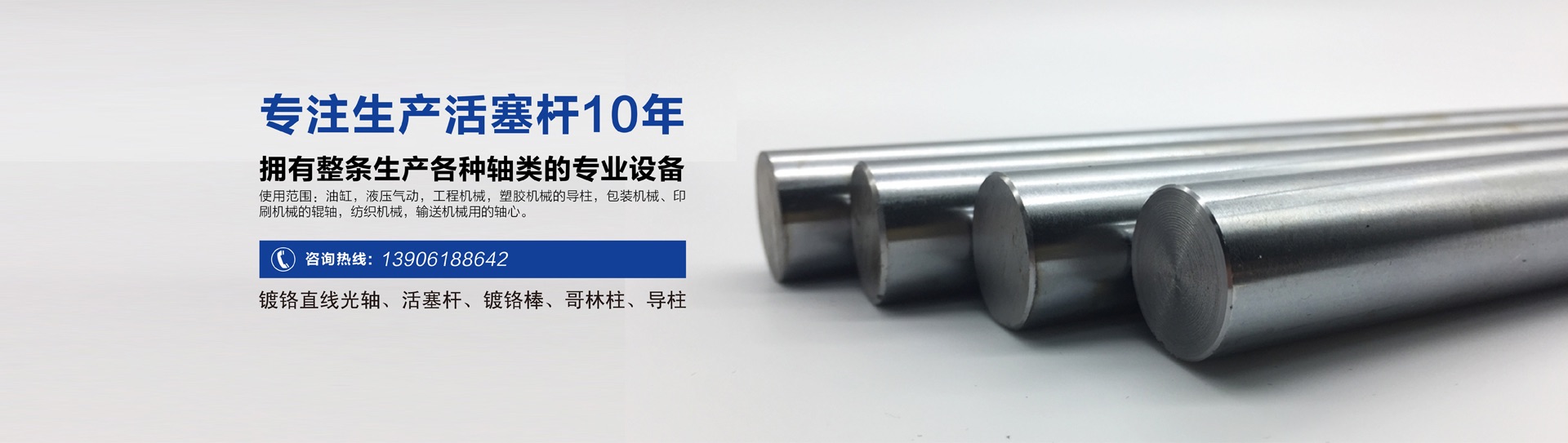 公司生產(chǎn)的活塞桿廣泛用于油缸,液壓氣動(dòng),工程機(jī)械、汽車制造用活塞桿,塑膠機(jī)械的導(dǎo)柱,包裝機(jī)械、印刷機(jī)械的輥軸,紡織機(jī)械,輸送機(jī)械用的軸心,直線運(yùn)動(dòng)用的直線光軸。